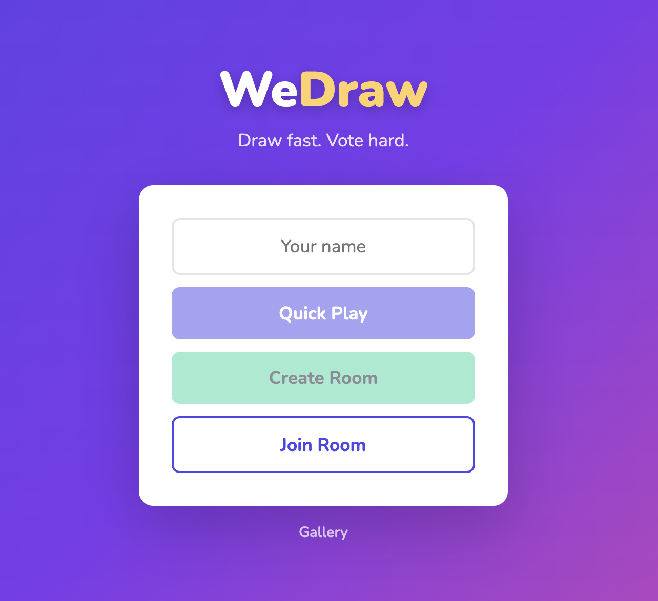 WeDraw is the result -- a multiplayer drawing and voting game that runs entirely in the browser. Works on iPads, Android tablets, phones, desktops, whatever. You hop in, pick a name, and either quick-play into a public room or create a private room with a shareable code. Everyone gets the same theme, draws against the clock, then votes on each other's masterpieces (no voting for yourself, obviously). Stars get tallied, winner gets bragging rights.